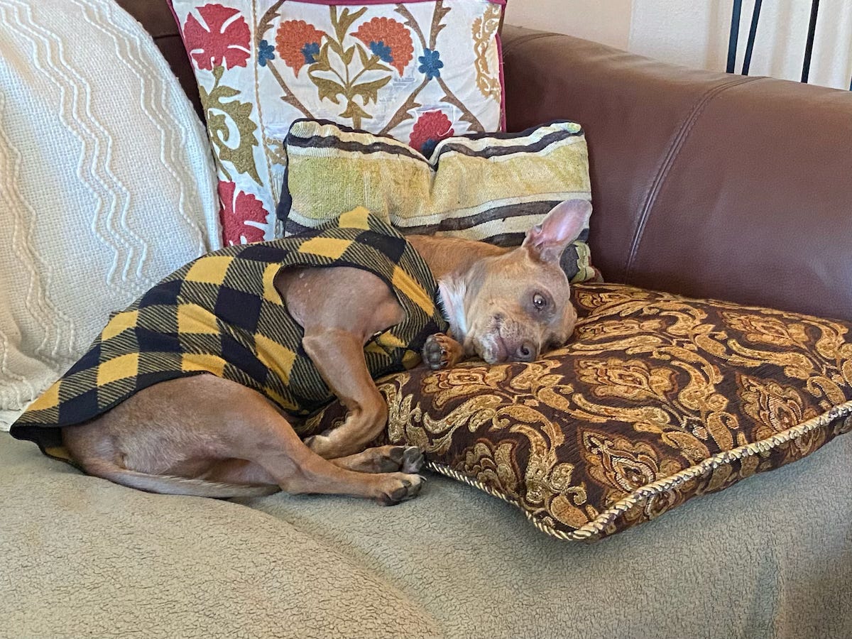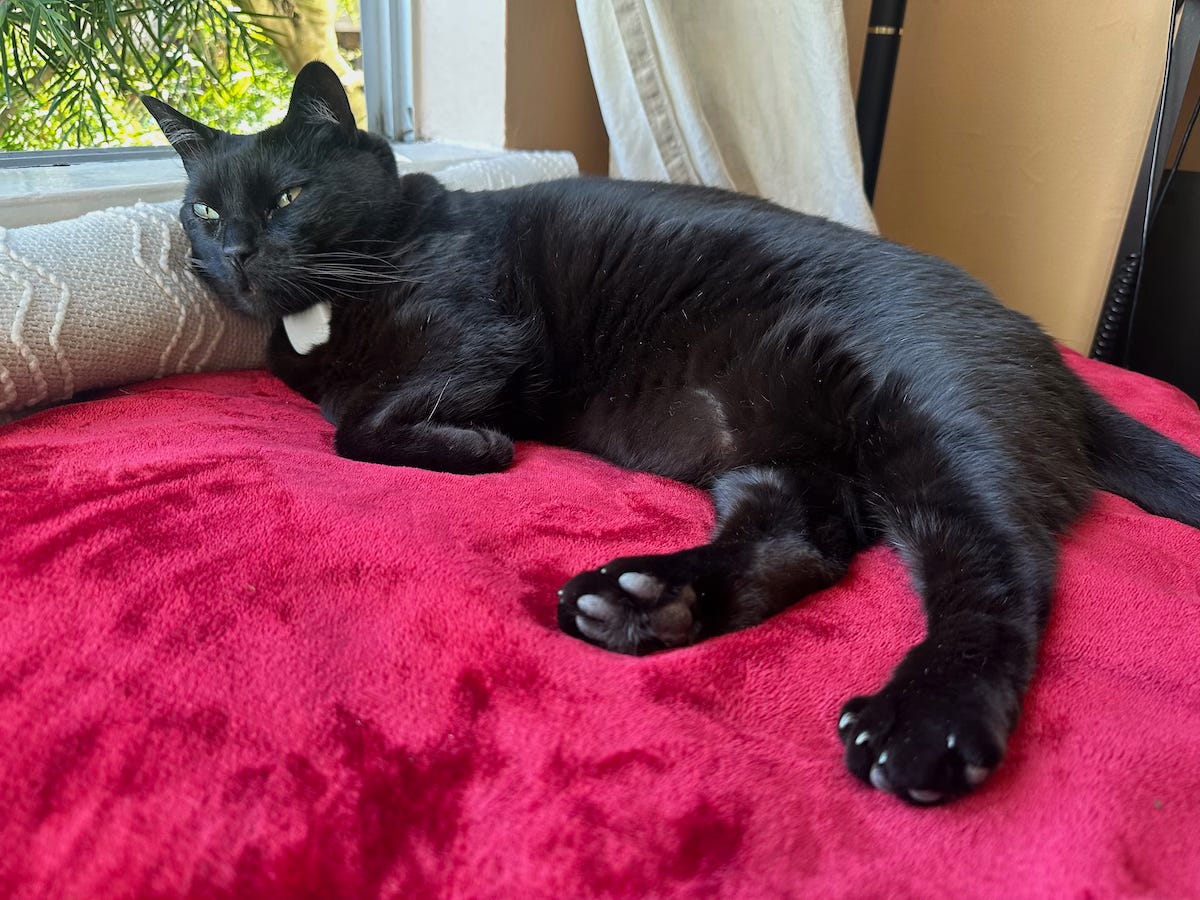 September and October are traditionally the warmest months in San Francisco - and this year we’ve gotten an early start. We’ve had 10 sunny days in August! The boys are loving it, but as the cats are now 11 - they enjoy it by laying in open windows at least as often as they go outside. Frankly Ira is fed up. Because of the grim weather we’ve had previously, our garden isn’t doing well this year - so we’ve spent less time there - and with all the work around our coming merger, I’ve had to be tied to the computer more than either of us prefer. Just the same, he is always a good happy dog. He just sighs more often. He’s going to be So Happy come October!