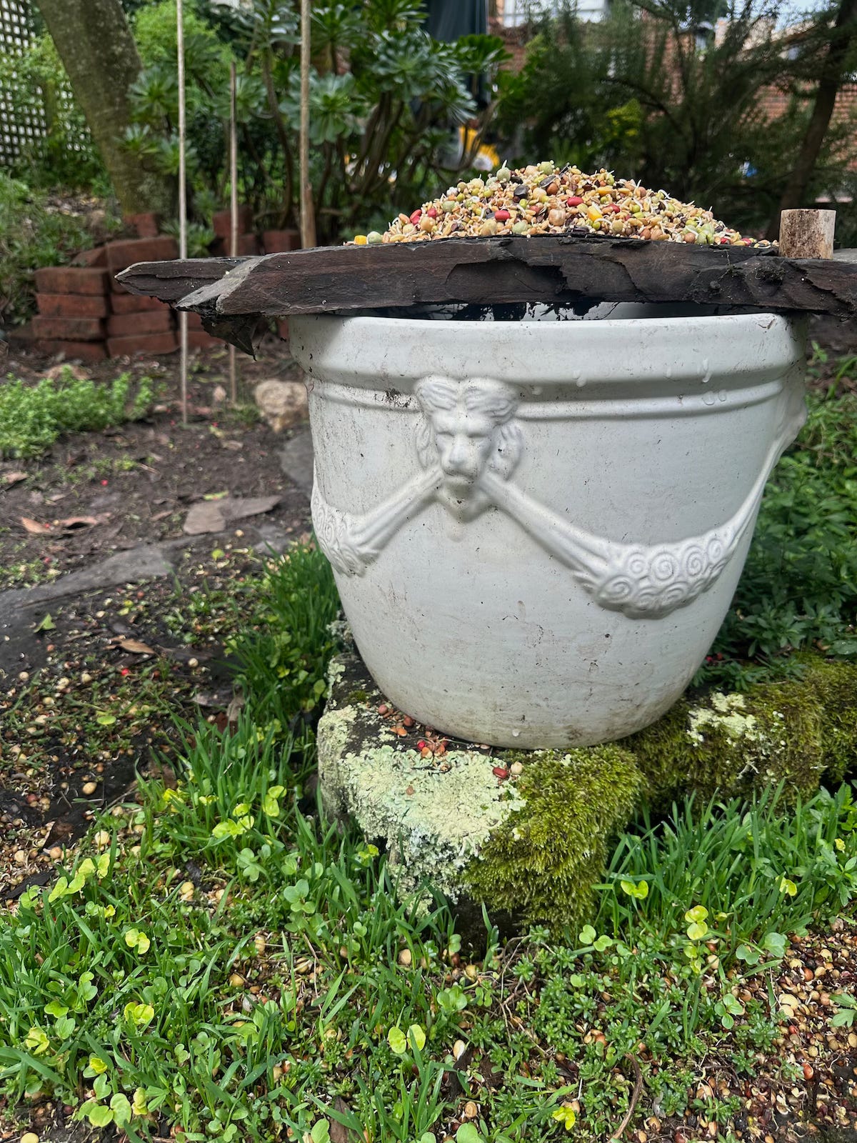 I’ve yet to recruit any parrots to our garden - but I keep putting sprouts out daily - and filling the birdbath (which I empty at dusk, because the raccoons don’t need extra enticement to visit - and they make a huge mess if I leave it). Instead of boring you with more pictures of crows, ravens, squirrels, and adorable little birds - I am sharing just one.